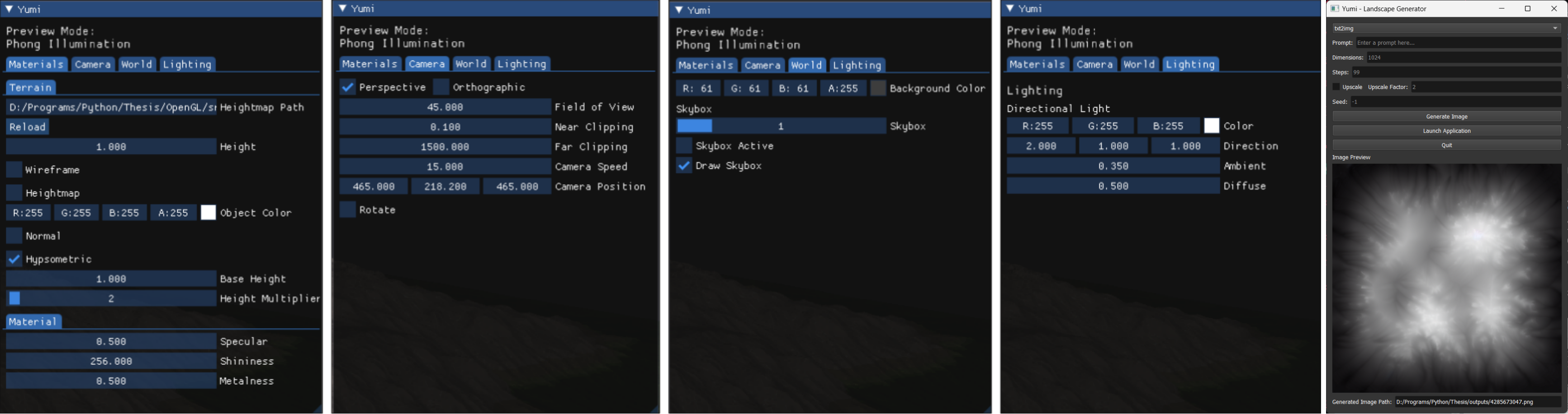 Thesis project combining Stable Diffusion with a custom C++ OpenGL renderer for AI-guided terrain generation.
